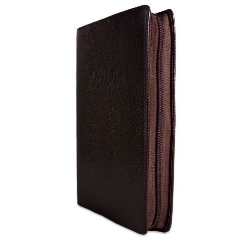 Biblia marime medie, maro, piele, fermoar, margini aurii, index, cuv. lui Isus cu rosu [MAR 057 PFI]