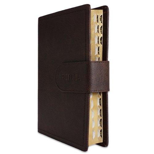 Biblia marime medie, maro, piele, inchidere baretă cu capsă, margini aurii, index, cuv. lui Isus cu rosu [MAR 057 PBI]