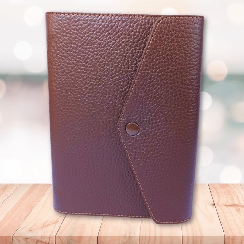 Biblia marime medie, maro, piele, inchidere clapeta cu capsa 2, margini aurii, index, cuv. lui Isus cu rosu [MAR 057 PCI]