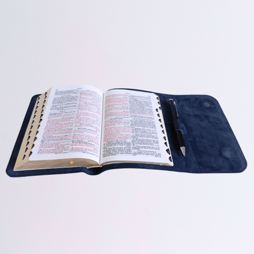 Biblia marime medie,neagră, piele, inchidere clapeta cu magnet, margini aurii, index, cuv. lui Isus cu rosu [MAR 057 PMI]