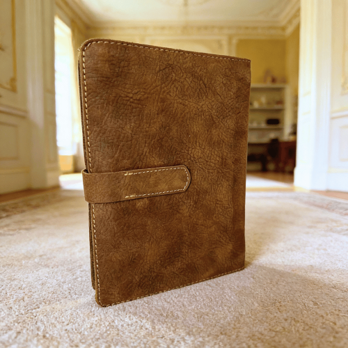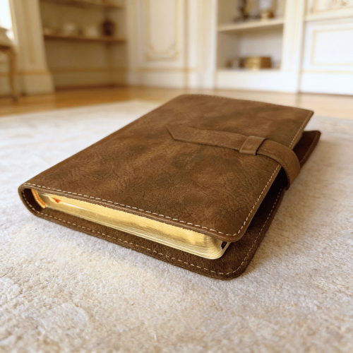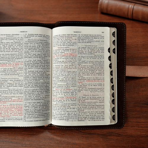 Biblia marime medie, maro, piele vintage, inchidere baretă, margini aurii, index, cuv. lui Isus cu rosu [MAR 057 PCI]