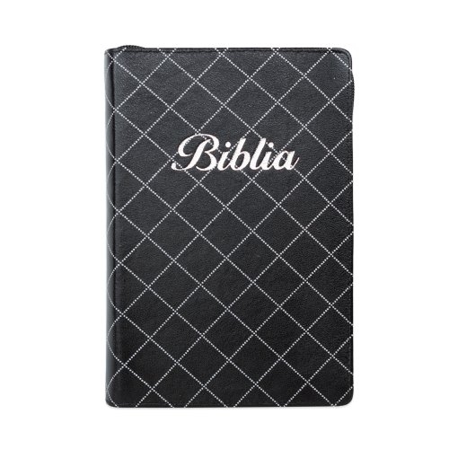 Biblia marime medie, neagra, piele, fermoar, margini aurii, index, cuv. lui Isus cu rosu [MAR 057 PFI]