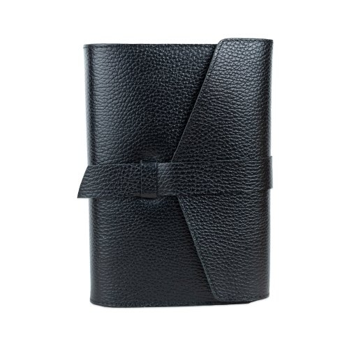 Biblia marime medie, neagră, piele, inchidere clapeta și baretă, margini aurii, index, cuv. lui Isus cu rosu [MAR 057 PCI]