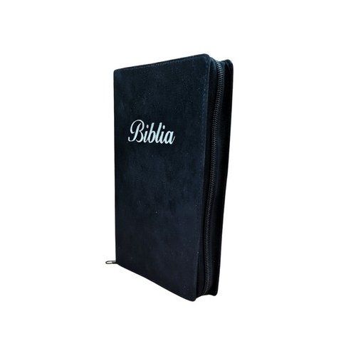 Biblia marime medie, negru texturat, piele, fermoar, margini aurii, index, cuv. lui Isus cu rosu [MAR 057 PFI]