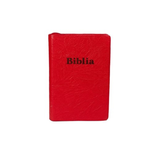 Biblia marime medie, rosie, piele, fermoar, margini aurii, index, cuv. lui Isus cu rosu [MAR 057 PFI]