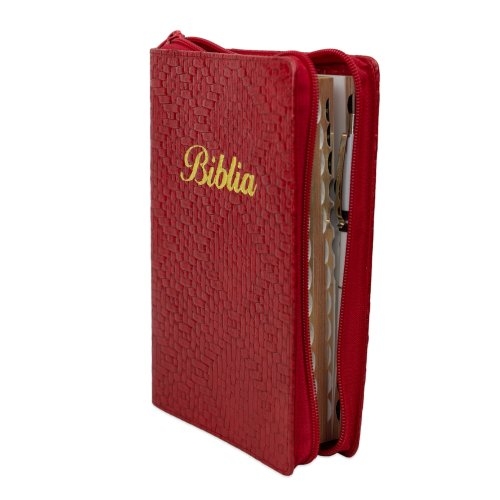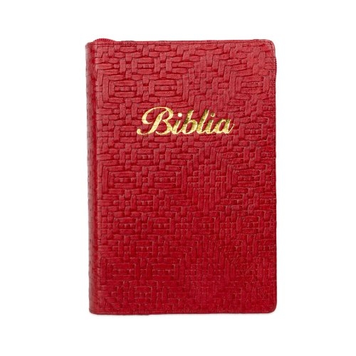 Biblia marime medie, rosu texturat, piele, fermoar, margini aurii, index, cuv. lui Isus cu rosu + pix [MAR 057 PFI]