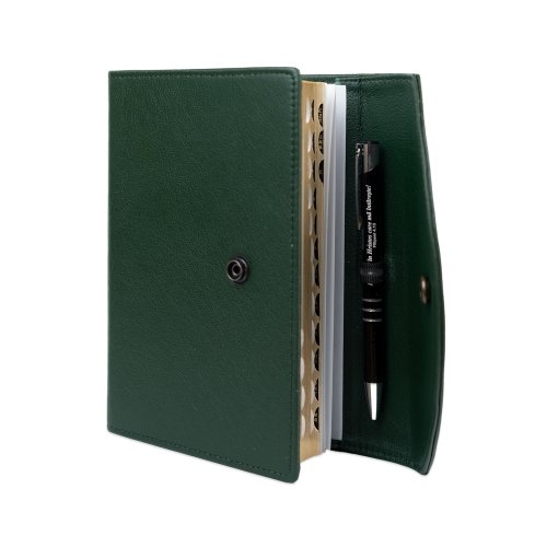 Biblia marime medie, verde, piele, inchidere clapeta cu capsa 1, margini aurii, index, cuv. lui Isus cu rosu [MAR 057 PCI]
