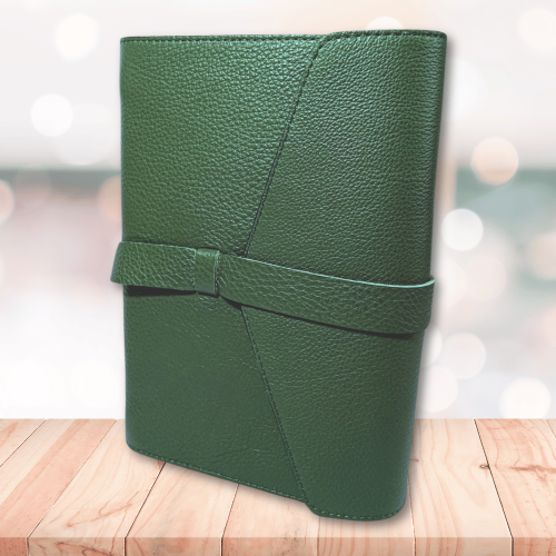 Biblia marime medie, verde, piele, inchidere clapeta și baretă, margini aurii, index, cuv. lui Isus cu rosu [MAR 057 PCI]