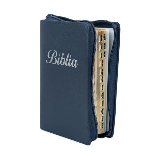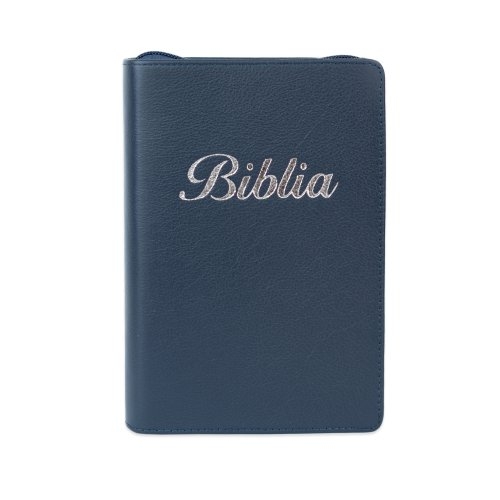 Biblia marime mica, bleumarin, piele, fermoar, margini aurii, index, cuv. lui Isus cu rosu [047 PFI]