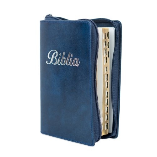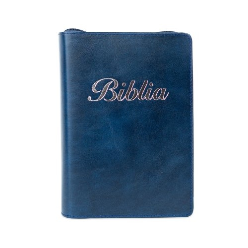 Biblia marime mica, bleumarin, piele, fermoar, margini aurii, index, cuv. lui Isus cu rosu [047 PFI]