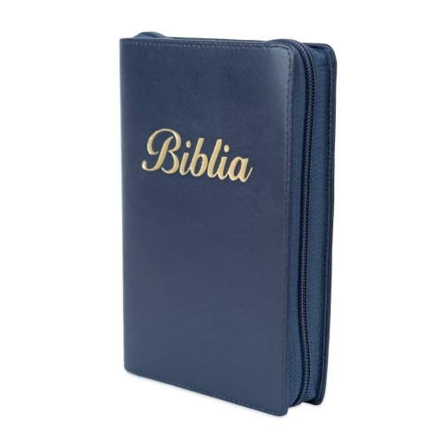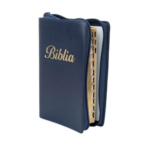 Biblia marime mica, bleumarin, piele, fermoar, margini aurii, index, cuv. lui Isus cu rosu [047 PFI]