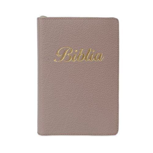 Biblia marime mica, culoare cappuccino, piele, fermoar, margini aurii, index, cuv. lui Isus cu rosu [047 PFI]