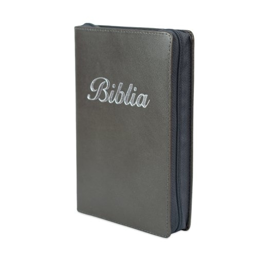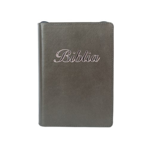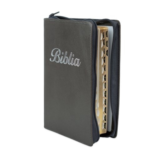 Biblia marime mica, gri închis, piele, fermoar, margini aurii, index, cuv. lui Isus cu rosu [047 PFI]