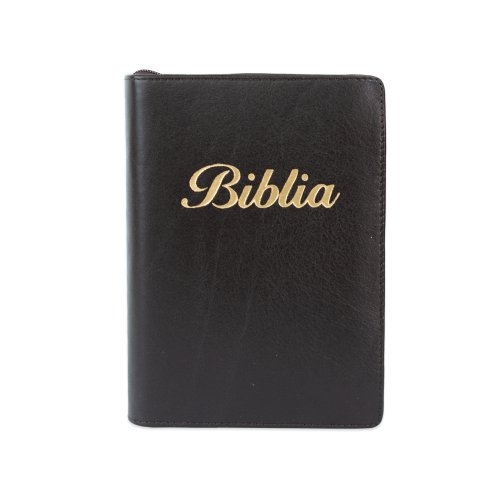 Biblia marime mica, maro închis , piele, fermoar, margini aurii, index, cuv. lui Isus cu rosu [047 PFI]