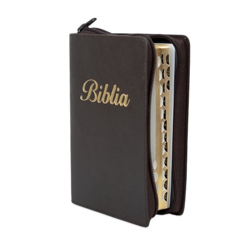 Biblia marime mica, maro, piele, fermoar, margini aurii, index, cuv. lui Isus cu rosu [047 PFI]