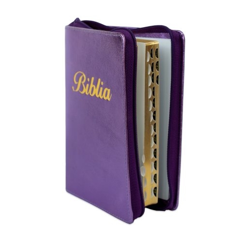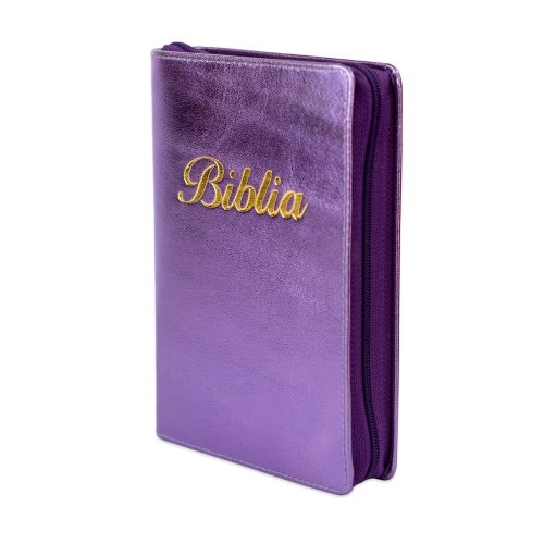 Biblia marime mica, mov, piele, fermoar, margini aurii, index, cuv. lui Isus cu rosu [047 PFI]