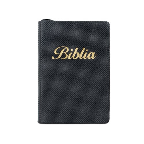 Biblia marime mica, negru texturat, piele, fermoar, margini aurii, index, cuv. lui Isus cu rosu [047 PFI]