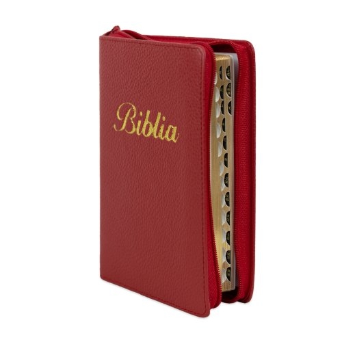 Biblia marime mica, roșu închis, piele, fermoar, margini aurii, index, cuv. lui Isus cu rosu [047 PFI]