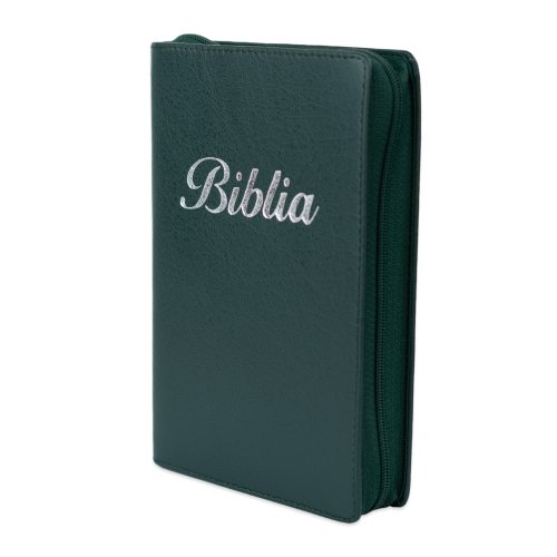 Biblia marime mica, verde închis, piele, fermoar, margini aurii, index, cuv. lui Isus cu rosu [047 PFI]
