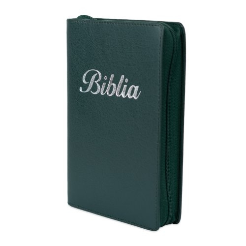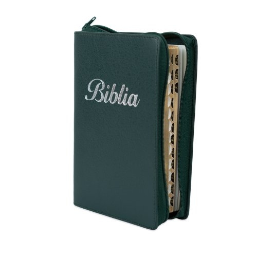 Biblia marime mica, verde, piele, fermoar, margini aurii, index, cuv. lui Isus cu rosu [047 PFI]