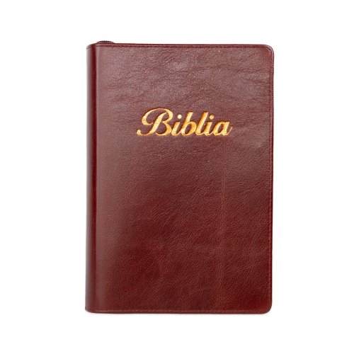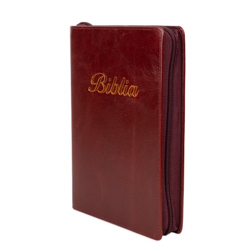 Biblia marime mica, vișiniu închis, piele, fermoar, margini aurii, index, cuv. lui Isus cu rosu [047 PFI]