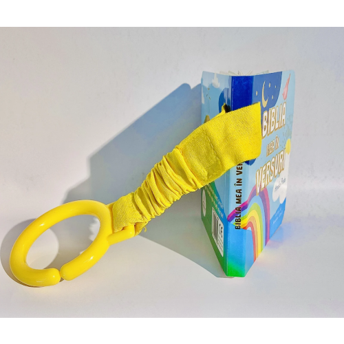 - se poate fixa pe cadrul căruciorului, la patuţ, scoică sau la locul de joacă, cu ajutorul unui inel.