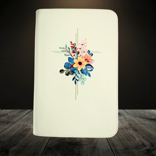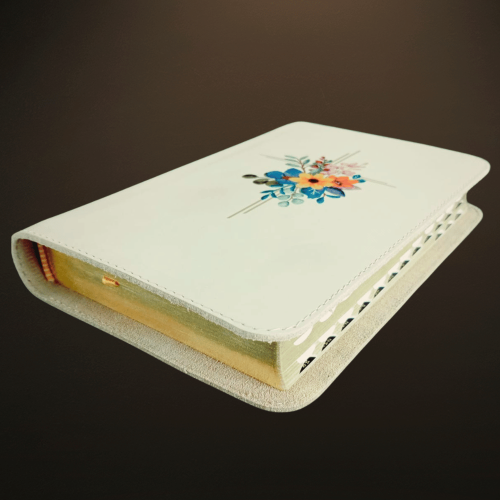 Biblia medie, piele, bej, aurita, index, fara fermoar, cuv. lui Isus cu rosu, simbol flori [057 PI]