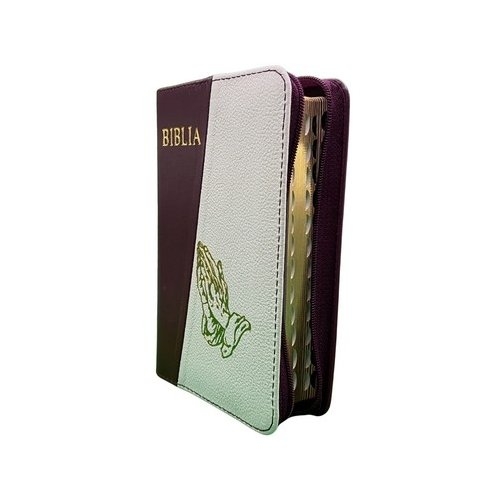 Biblia mica, coperta piele, culoare, bordo cu alb, index, fermoar, margini aurii, simbolul maini, cuv. lui Isus in rosu [047 PFI]