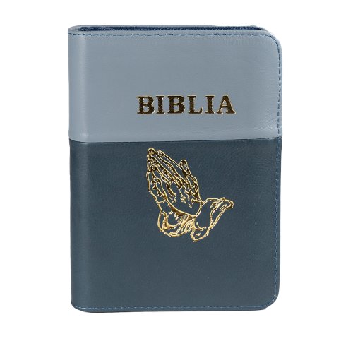 Biblia mica, coperta piele, culoare, gri deschis cu gri închis, index, fermoar, margini aurii, simbolul maini, cuv. lui Isus in rosu [047 PFI]