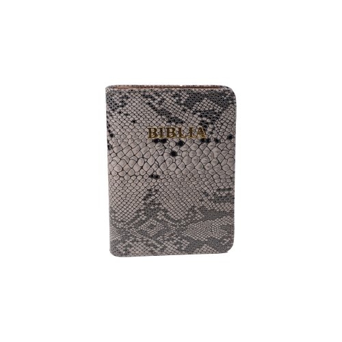 Biblia mica, coperta piele, culoare, maro cu gri texturat, index, fermoar, margini aurii, cuv. lui Isus in rosu [047 PFI]