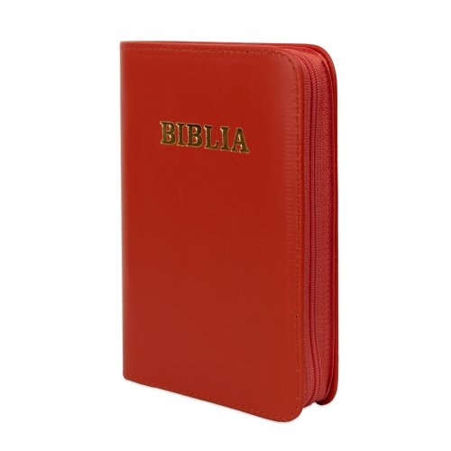 Biblia mica, coperta piele, roșu, index, fermoar, margini aurii, cuv. lui Isus in rosu [047 PFI]