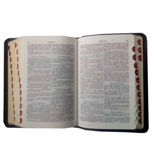 Biblia mica, de lux, mica, piele, visinie, index, fermoar, margini argintate, cuv. lui Isus in rosu [047 ZTI]