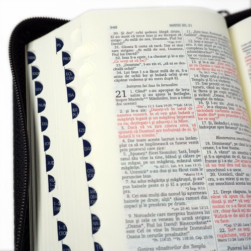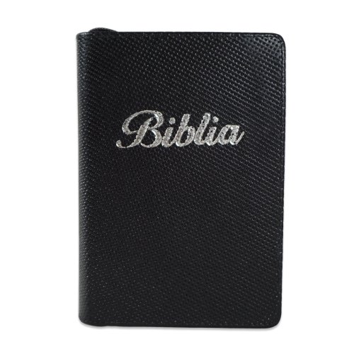 Biblia mica, din piele, culoare neagra, index, fermoar, margini argintii, cuv. lui Isus in rosu [MAR 047 PFI]