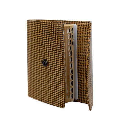 Biblia mica, din piele, nuanță de maro cu negru, clapeta cu capsa, index, margini aurii, cuv. lui Isus in rosu [MAR 047 PCI]