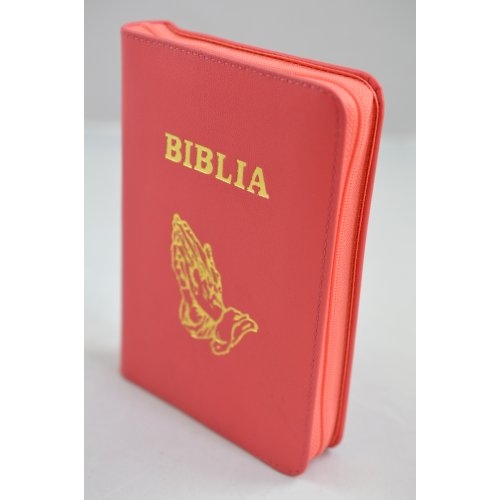 Biblia mica, piele, fermoar, caramizie, cu maini, cuv. lui Isus cu rosu [043 A]