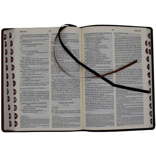 Indexul de cautare permite cititorului sa gaseasca rapid fiecare carte din Biblie, iar cu ajutorul celor doua panglici satinate, cititorul va gasi usor textul preferat sau locul de unde sa continue citirea zilnica. Desi este un model foarte mare, Biblia NTR Confort nu are o greutate exagerata, ci este usor de transportat si folosit pentru timpul zilnic devotional.