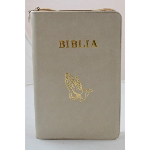 Biblia NTR (Noua Traducere), coperta piele, bej, simbol maini in ruga, fermoar, argintata - editia 3 revizuita