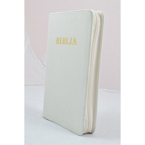 Biblia NTR (Noua Traducere) din piele alba, cu fermoar