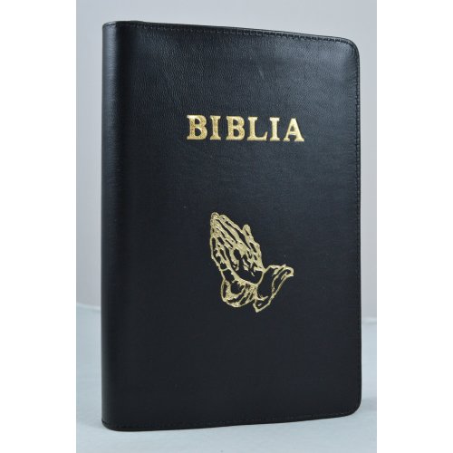 Biblia NTR - Noua Traducere, marime medie-mare, piele, neagra, fermoar, simbol maini