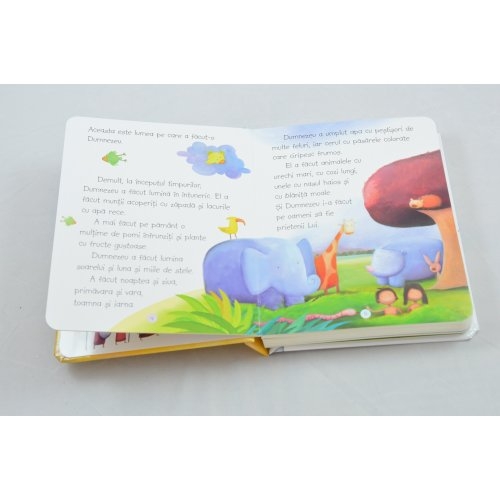 Biblia piticilor in imagini, combina textul cu ilustratiile vii, te ajuta sa inveti conceptele primare despre Dumnezeu care a creat lumea si oamenii. Biblia, tiparita pe carton lucios, tare, special pentru copiii pana la 6 ani.