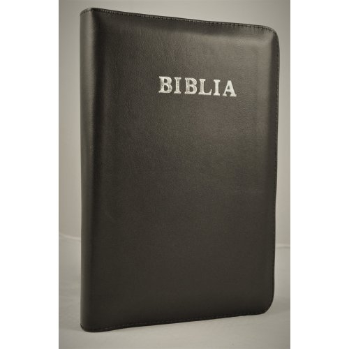Biblia Planului Profetic - piele, maro inchis, mare, fermoar, margini aurite, cuv. lui Isus cu rosu