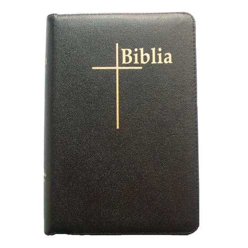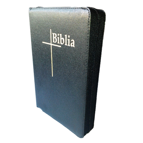 Biblia Thompson, marime medie, piele, neagra, fermoar, margini aurii, index