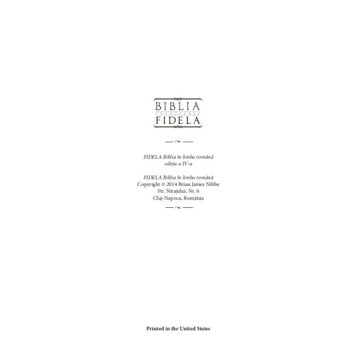 Dar cerem să fie folosită titulatura FIDELA, în toate situaţiile în care se cere identificarea textului. Aceasta este de asemenea o practică atribuită fiecărei traduceri cu sau fără drept de autor. Numele acestei traduceri este FIDELA, pentru faptul că am dorit să dăm o traducere curată a cuvintelor păstrate şi inspirate ale lui Dumnezeu.