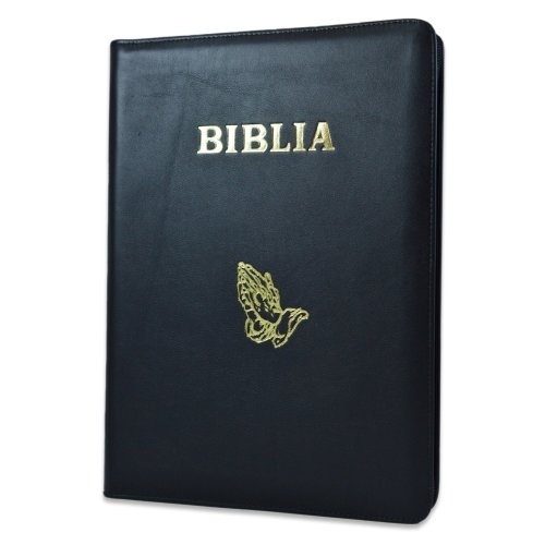 Biblia foarte mare, scris foarte mare, piele, fermoar, neagra, simbol maini [093 PF]