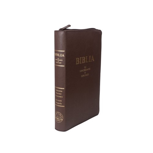 Biblie de lux, mare, din piele ecologică, visinie, fermoar, index, concordanta, explicatii, cuv. lui Isus cu rosu [CO 77 ZTI]
