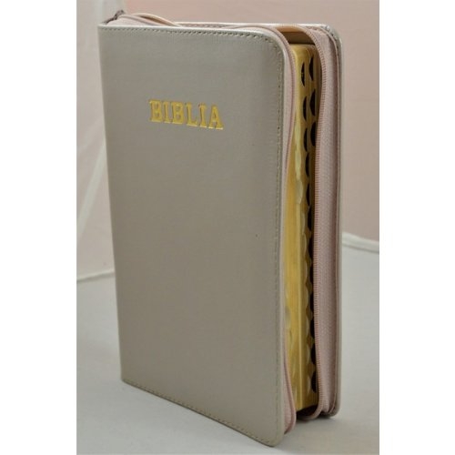 Biblie de lux, medie, din piele, bej, index, aurita, fermoar [SI 057 PFI]
