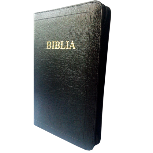 Biblie de lux, medie, din piele, gri inchis, index, aurita, fermoar [SI 057 PFI]