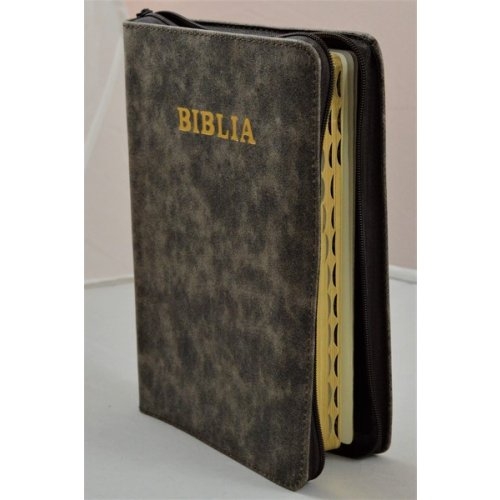 Biblie de lux, medie, din piele, nuante de maro, index, aurita, fermoar [SI 057 PFI]