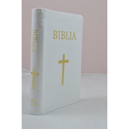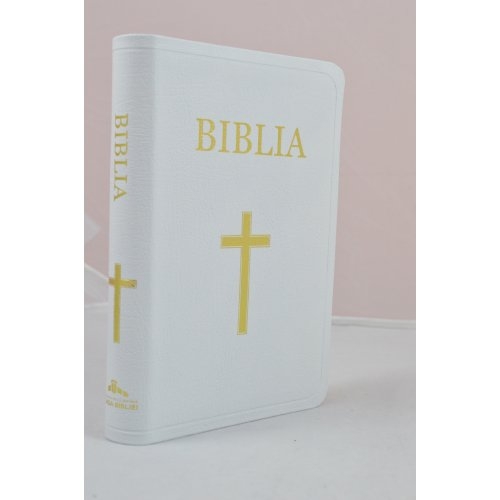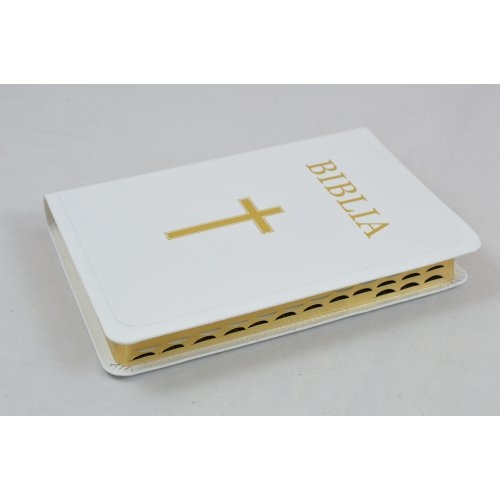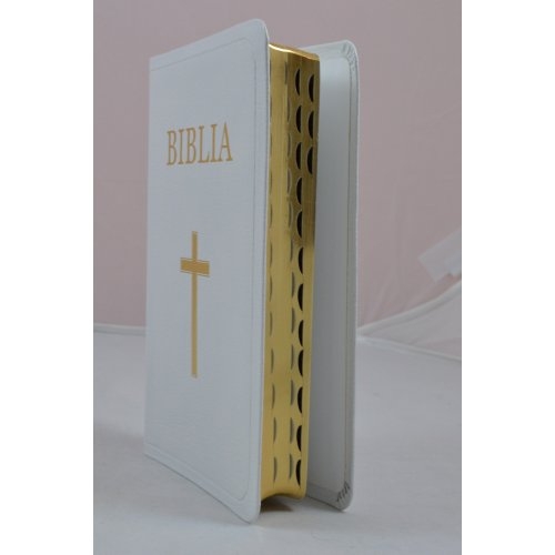 Biblie din piele alba, medie, index pe lateral, margini aurii [053 PR]