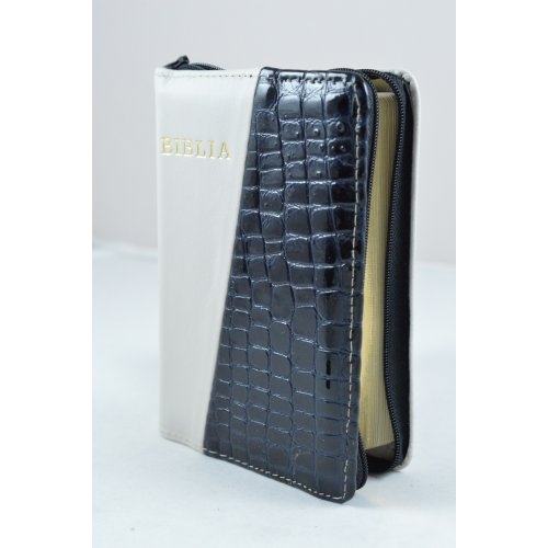Biblie din piele, dimensiune mica, alb cu negru lucios model patratele, fermoar, cuv. lui Isus in rosu [043 A]